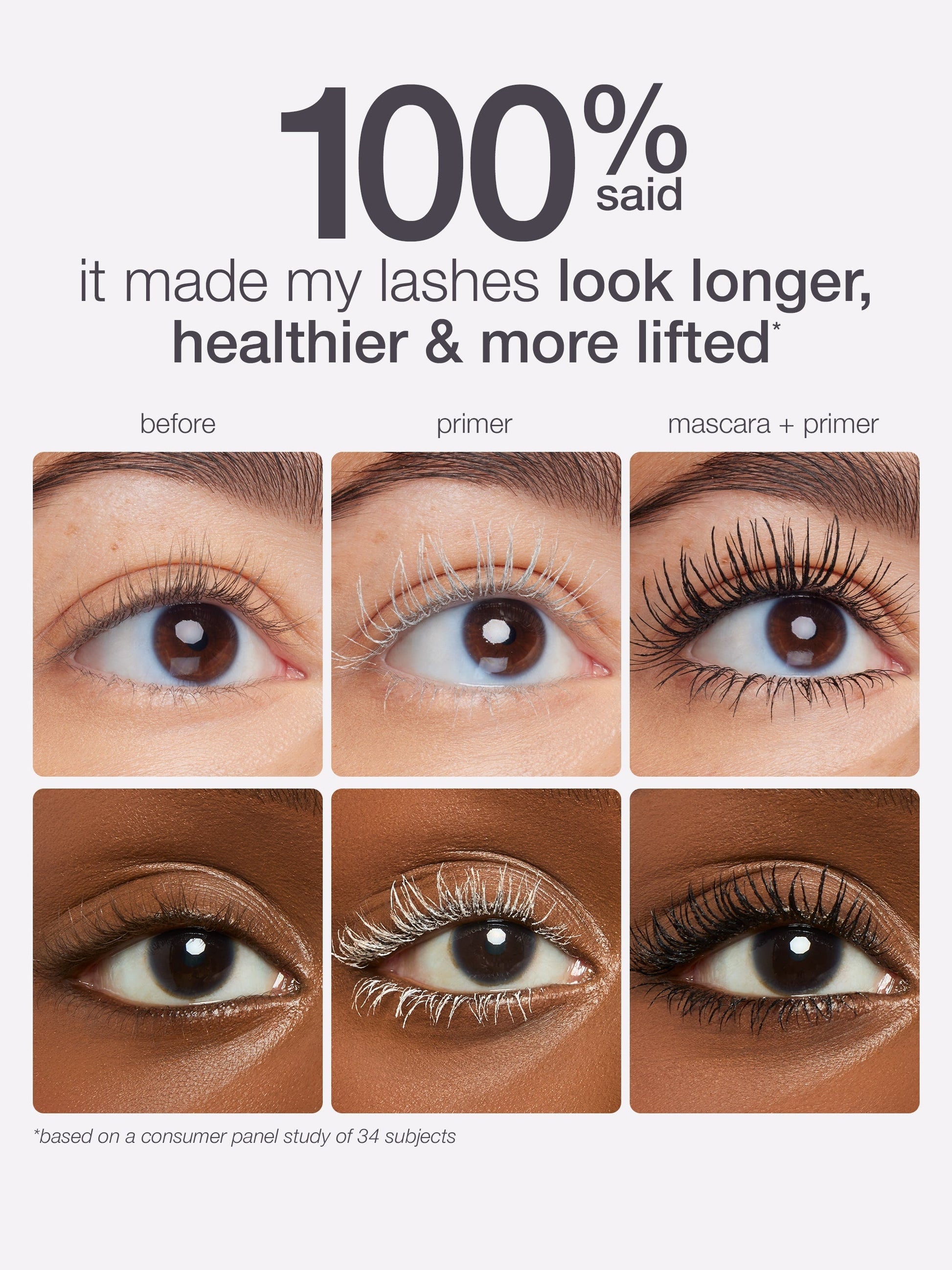 This white-tinted tubing primer boosts volume, length & lift while wrapping each lash in protective tubes for healthier- & stronger-looking lashes. Bonus: It makes mascara removal a breeze—no tugging or scrubbing!